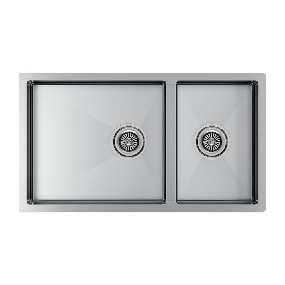 Габариты мойки составляют 780х440мм, две вместительные чаши обеспечивают максимальное пространство и удобство для мытья посуды и продуктов. Возможен подстольный, накладной монтаж или монтаж вровень со столешницей.